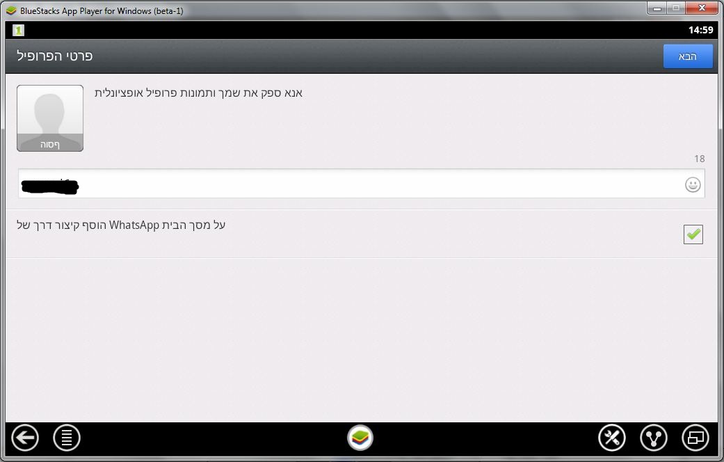 פה נבחר לעצמינו כינוי ואפשר גם להוסיף תמונה ואז לוחצים על הכפתור למעלה בצד שמאל 'הבא'