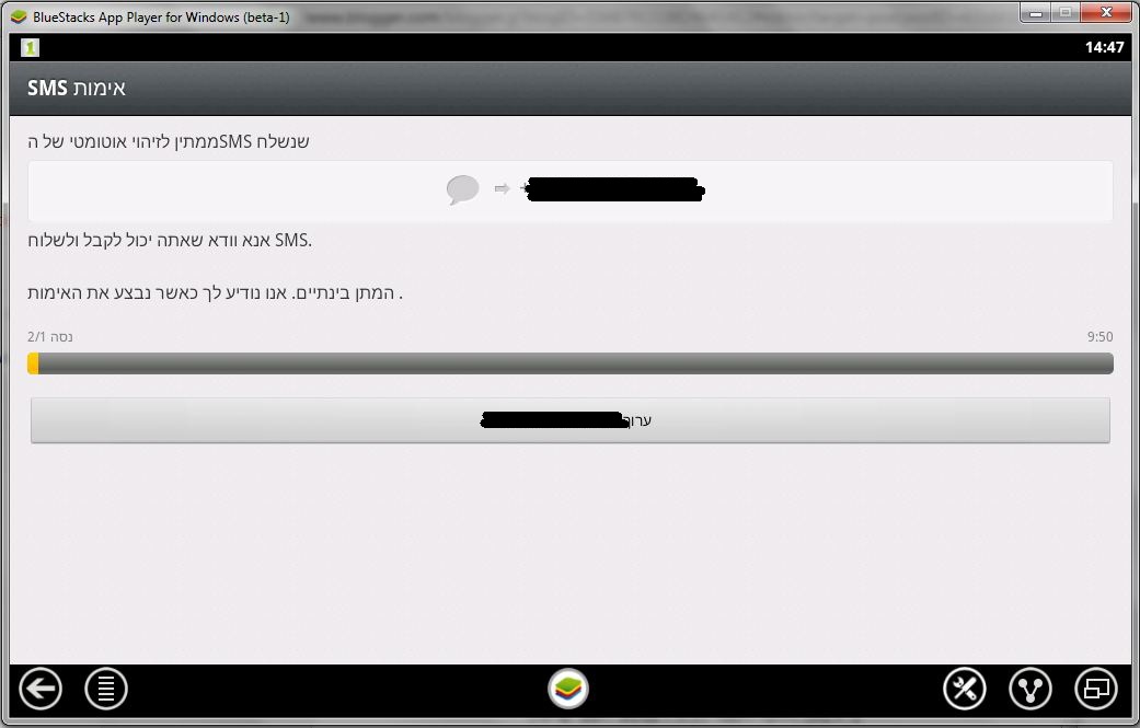 ונשאיר אותו כך ותוך 10 דקות בערך נקבל SMS עם קוד אימות עשיו יפתח לנו חלון ונכניס שם את הקוד שקיבלנו ב SMS