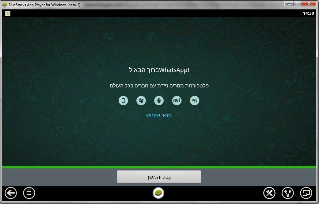 נפתח את whatsapp ונלחץ 'קבל והמשך'